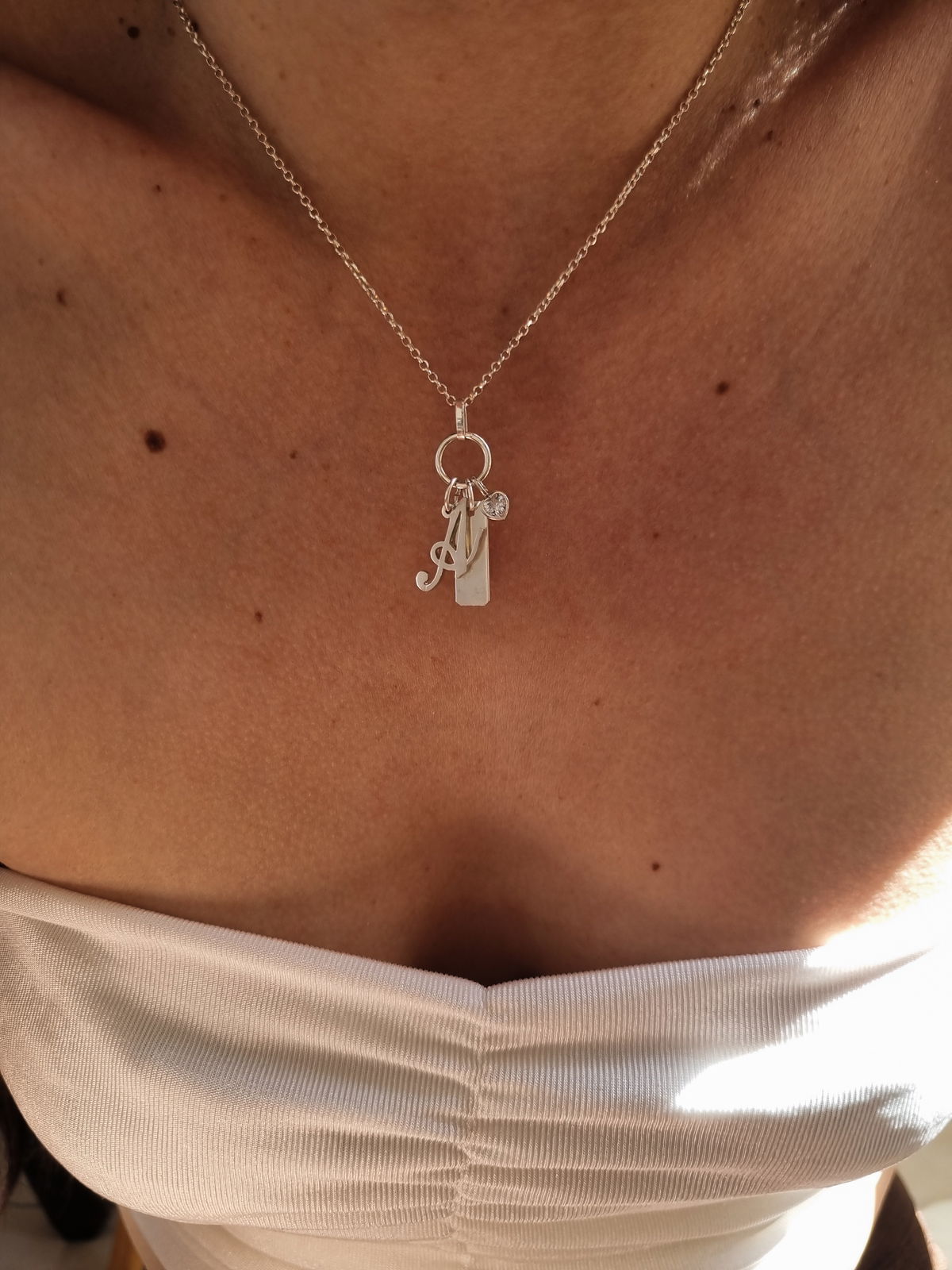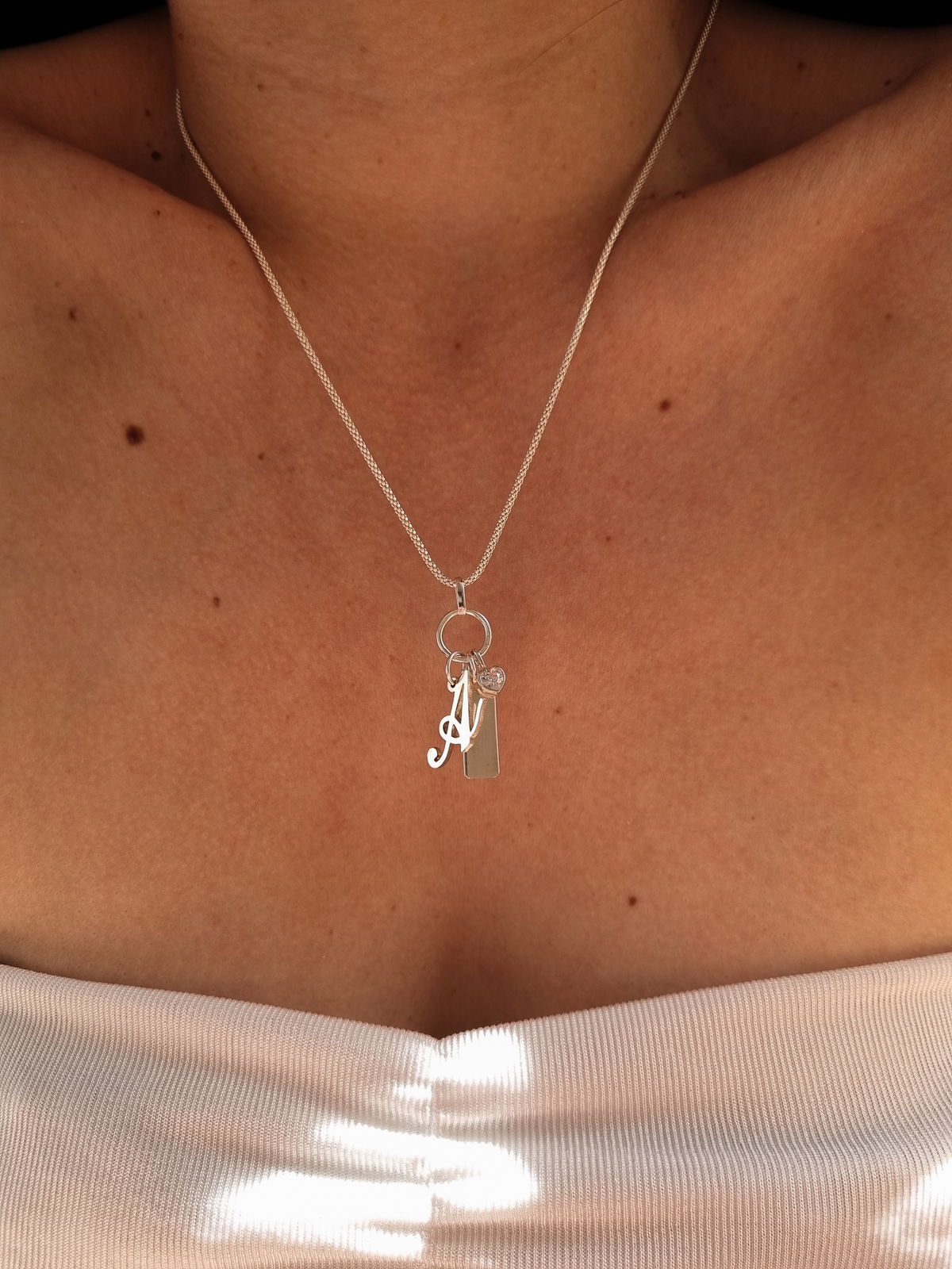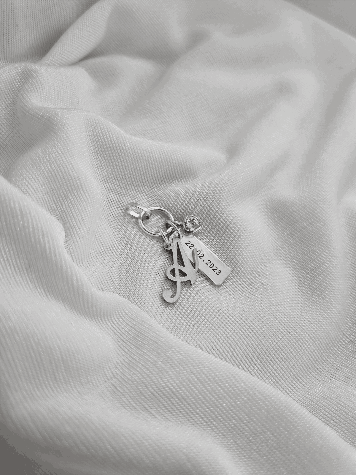 Set de dijes (Inicial, corazon cubic y chapita rectangular)